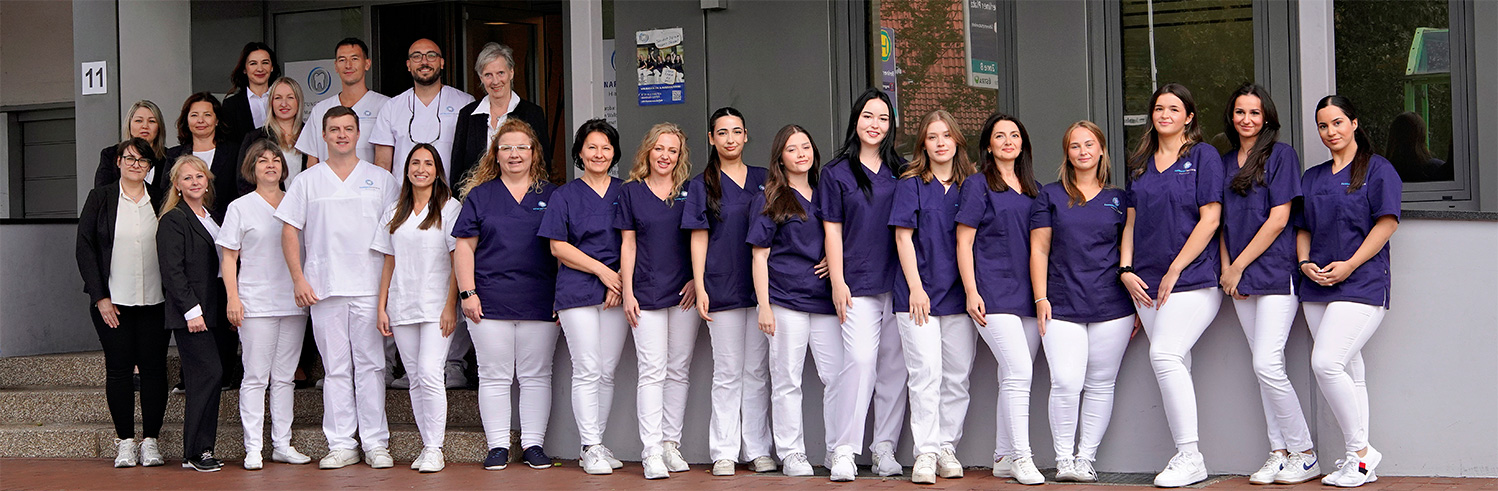 Unser Team besteht aus 24 freundlichen und erfahrenen Zahnärzten und Zahnärztinnen, zahnmedizinischen Fachangestellten, zahnmedizinischen Verwaltungsassistentinnen und Prophylaxeassistentinnen. Um die bestmögliche Versorgung unserer Patienten sicherzustellen, bilden wir unsere Zahnärzte/Zahnärztinnen und unsere Mitarbeiterinnen stetig weiter. Ob Ihre Interessen in der Assistenz, der Prophylaxe, in der Abrechnung oder am Empfang liegen, wir bieten für alle Mitarbeiterinnen und Mitarbeiter die Möglichkeit, sich individuell zu entfalten.